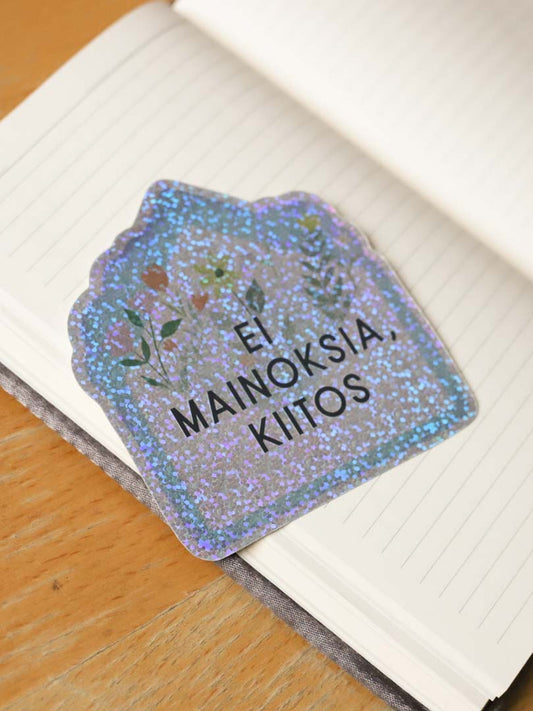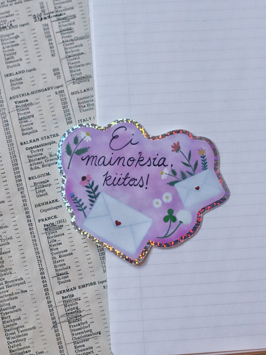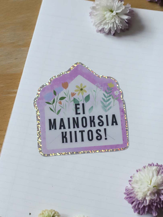 Ei mainoksia -tarra oveen tai postilaatikkoon, sininen (glitter)
