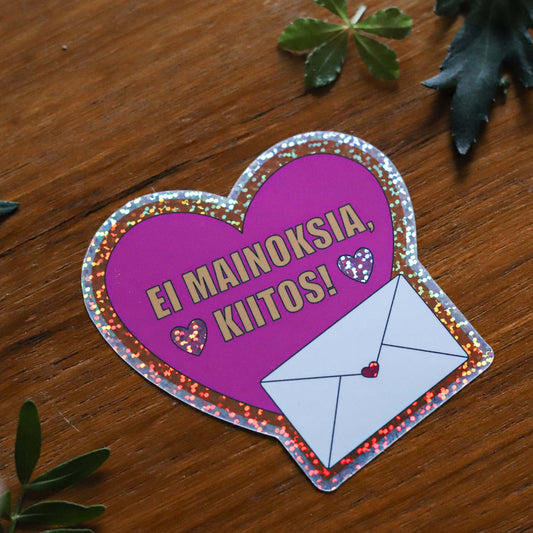Ei mainoksia -tarra oveen tai postilaatikkoon, sydän