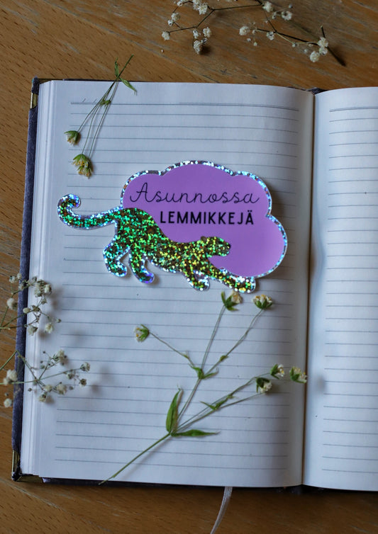 Asunnossa lemmikkejä- tarra oveen