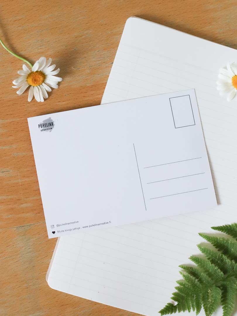 Voimaannuttava postikortti mustavalkoruutu- ja puhelinkuvituksella koossa A6 (108 x 148 mm). Lähetä kaverille tai kiinnitä vaikka jääkaapin oveen muistutukseksi itselle!